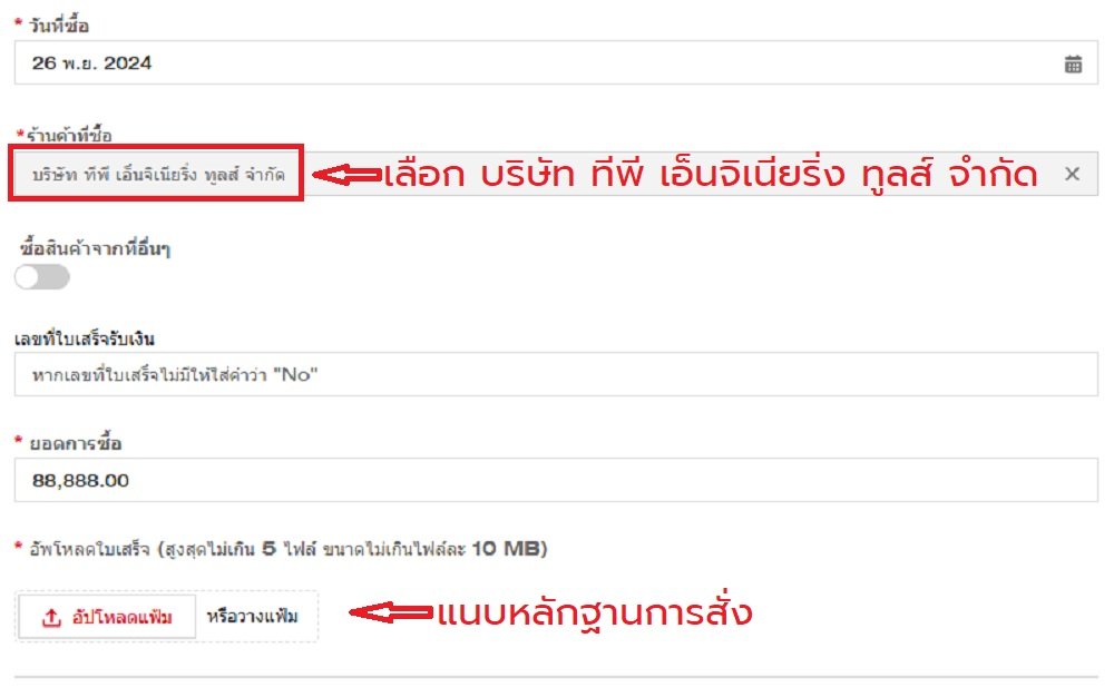 (ในส่วนร้านค้าที่ซื้อให้เลือก บริษัท ทีพี เอ็นจิเนียริ่ง ทูลส์ จำกัด หรือ ร้านค้าที่ท่านซื้อ)