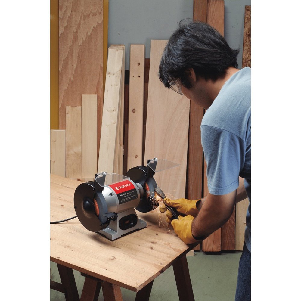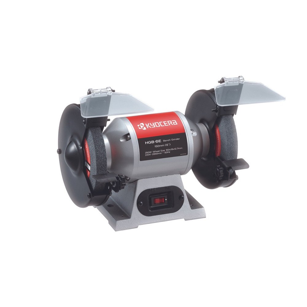 KYOCERA HBG-6E BENCH GRINDER หินเจียร์ตั้งโต๊ะ 250 วัตต์ ใช้สำหรับงานเจียร์ต่าง ๆ รองรับหินขัด 150 มิลลิเมตร (6 นิ้ว) และมีขนาดเพลา 12.7 มิลลิเมตร