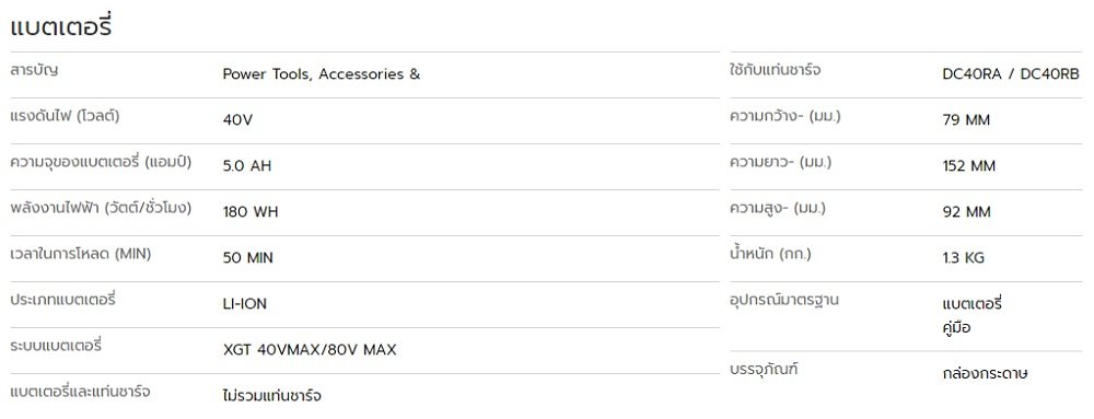 หมวดหมู่ : หมวดหมู่ ,  แบตเตอรี่/แท่นชาร์จ/อุปกรณ์เสริม ,  Products ,  MAKITA ,  แบตเตอรี่และแท่นชาร์จ ,  40 โวลต์ ,
