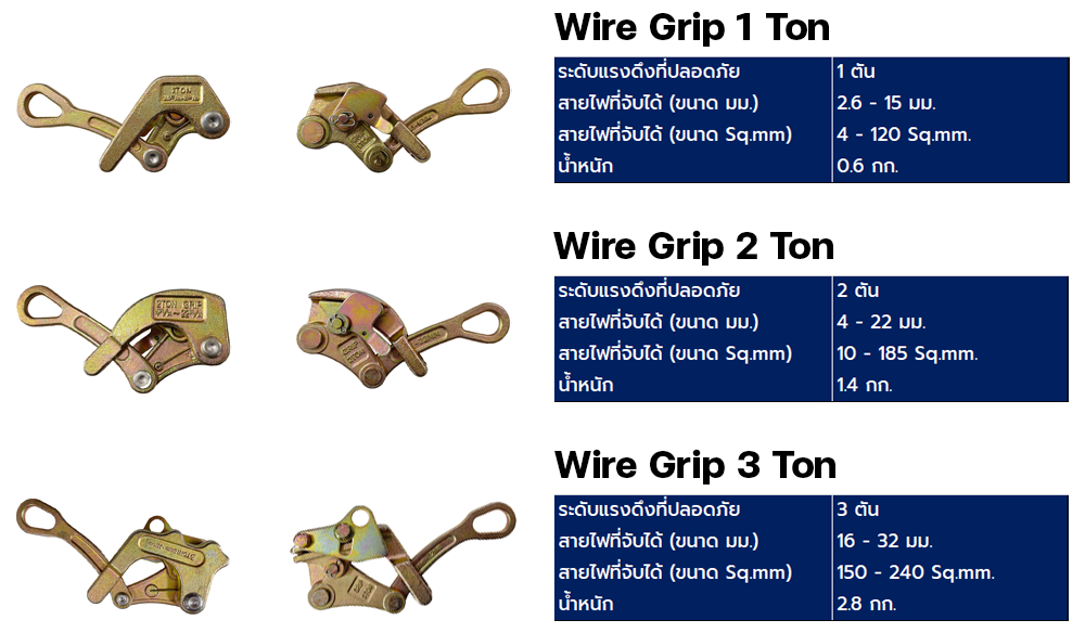 ปากจับสาย (Wire Grip) ขนาด 3 ตัน ใช้จับสายไฟฟ้าหรือสายเคเบิ้ล สายเปลือย และ สายหุ้มฉนวนในงานระบบไฟฟ้าและงานระบบสายสื่อสาร