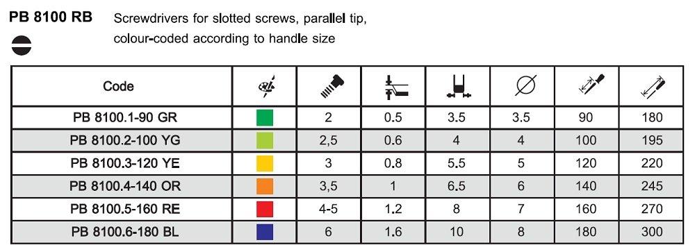 PB SWISS TOOLS ไขควงปากแบน เบอร์ 1 ถึง 6 รุ่น PB8100RB กำหนดสีตามเบอร์ของไขควง คุณภาพสูง ทนทาน ทำจาก Spring Steel มีความยืดหยุ่นเป็นพิเศษ