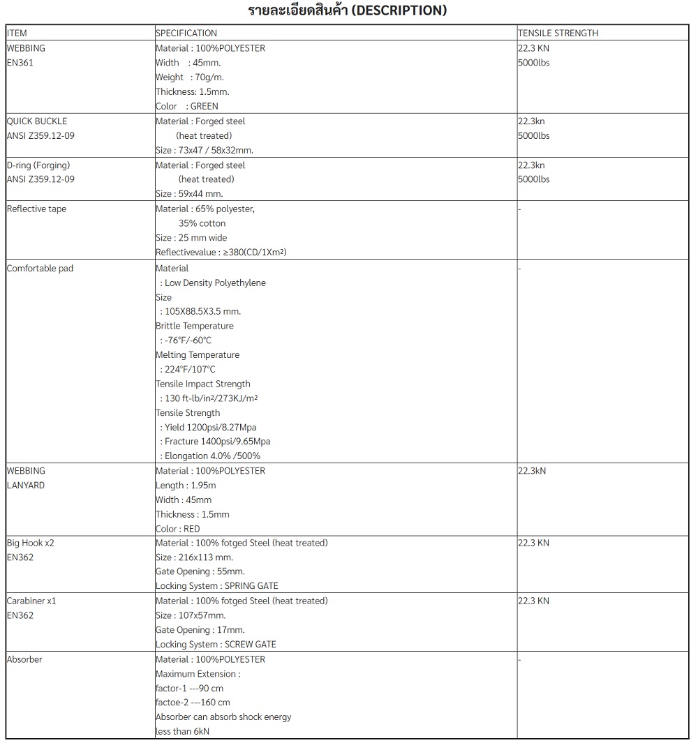 • มาตรฐาน EN361 EN362 EN355 EN354