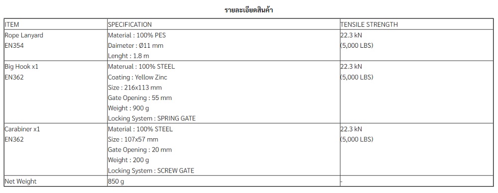 • ใช้เกี่ยวเข้ากับ D-ring ของชุดเข็มขัดเซฟตี้แบบเต็มตัว