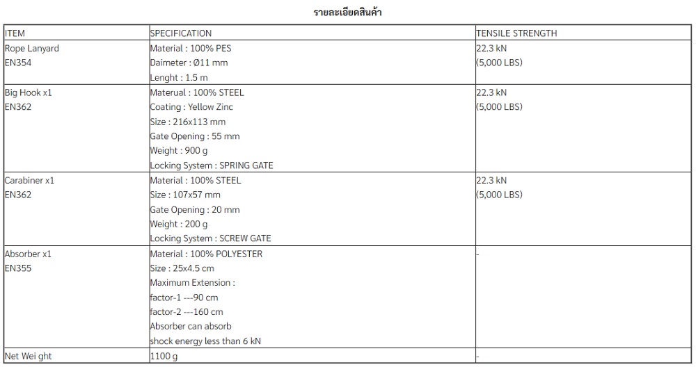 YAMADA เชือกเซฟตี้เส้นเดี่ยว รุ่น RA711 ผลิตจากโพลีเอสเตอร์ (Polyester) 100% สำหรับผู้ใช้งานที่มีน้ำหนักไม่เกิน 220 LBS (100 kg)