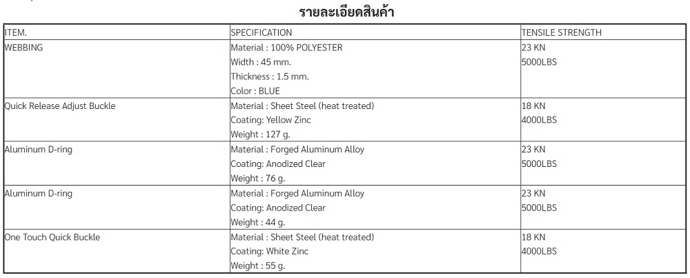 • ใช้เข้ากับเชสท์ฮาร์เนสเป็นชุดเซฟตี้เต็มตัว