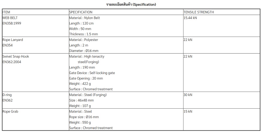 • มารฐาน CE EN358:1999 EN354 EN362:2004