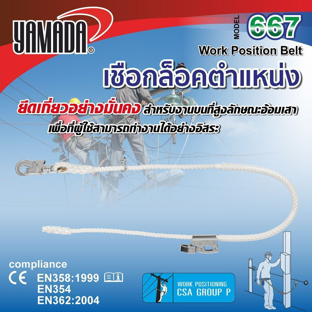 YAMADA เชือกล็อคตำแหน่ง รุ่น 667 ใช้งานร่วมกับเข็มขัดเซฟตี้ปีนเสาไฟฟ้า รุ่น L667 มาตรฐาน CE EN353-2:2002 (Rope grab)