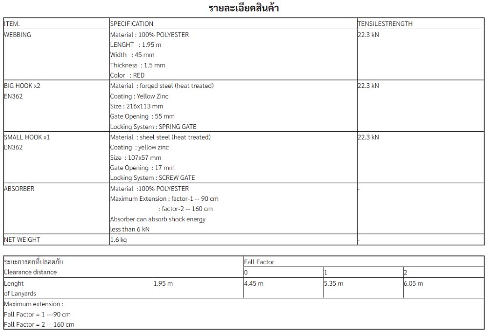 • ใช้เกี่ยวเข้ากับ D-ring ของชุดเข็มขัดเซฟตี้แบบเต็มตัว