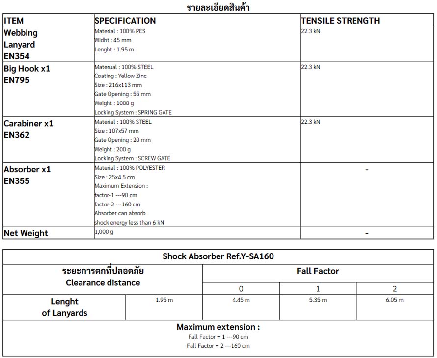 - ใช้เกี่ยวเข้ากับ D-ring ของชุดเข็มขัดเซฟตี้แบบเต็มตัว