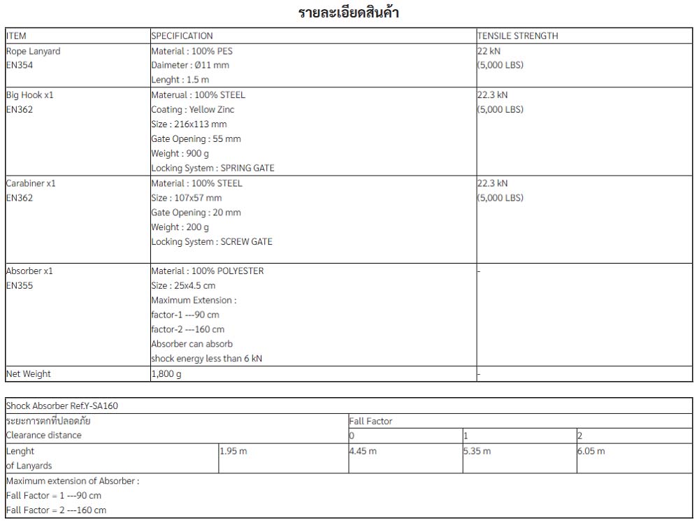 • ใช้เกี่ยวเข้ากับ D-ring ของชุดเข็มขัดเซฟตี้แบบเต็มตัว