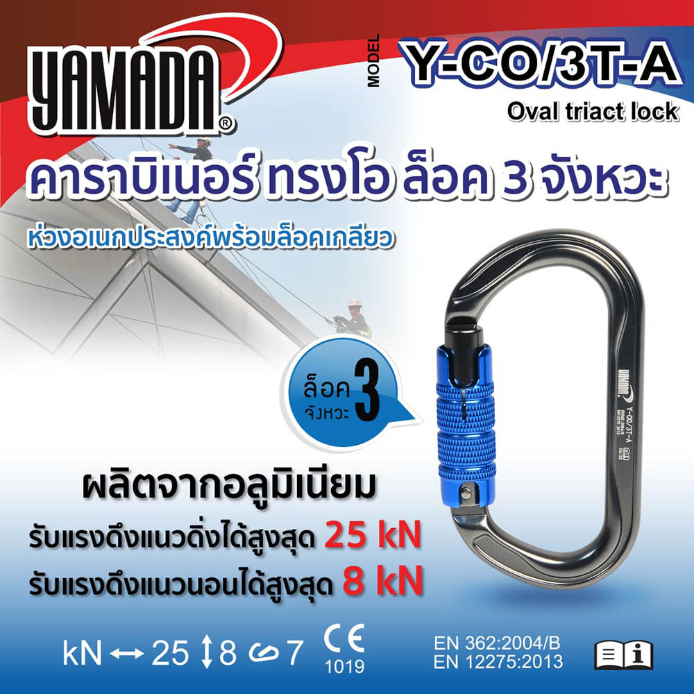 คาราบิเนอร์ทรงโอ ล็อค 3 จังหวะ รุ่น Y-CO/3T-A YAMADA