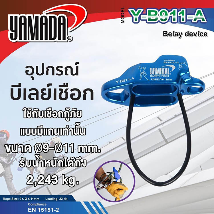 YAMADA บีเลย์ รุ่น Y-B911-A วัสดุอลูมิเนียมมีน้ำหนักเบาเป็นพิเศษ ใช้ในการไต่ลงได้ ใช้โรยตัวได้ ใช้กับเชือกไดนามิก สำหรับปีนตั้งแต่ 9-11 มม.