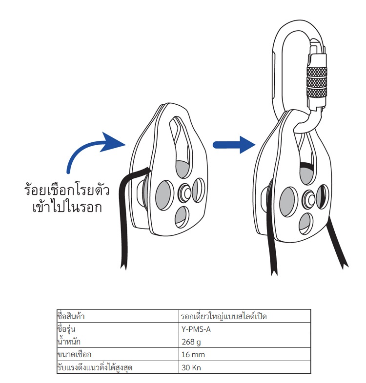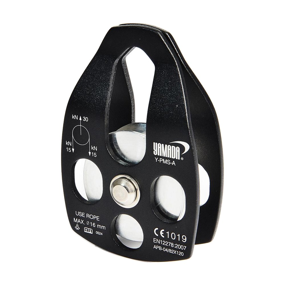 YAMADA รอกเดี่ยวใหญ่แบบสไลด์เปิด รุ่น Y-PMS-A ทำจากอลูมิเนียม ใช้งานกับเชือกที่มีขนาด 16 mm. รับแรงดึงแนวดิ่งได้สูงสุด 30 kN