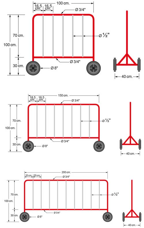 YAMADA TRAFFICE BARRIER RED-WHITE แผงกั้นจราจรแดง-ขาว (มีล้อ) โดดเด่นแข็งแรงอึดทน มีล้อสะดวกต่อการเคลื่อนย้าย ทำจากท่อเหล็กเกรด A