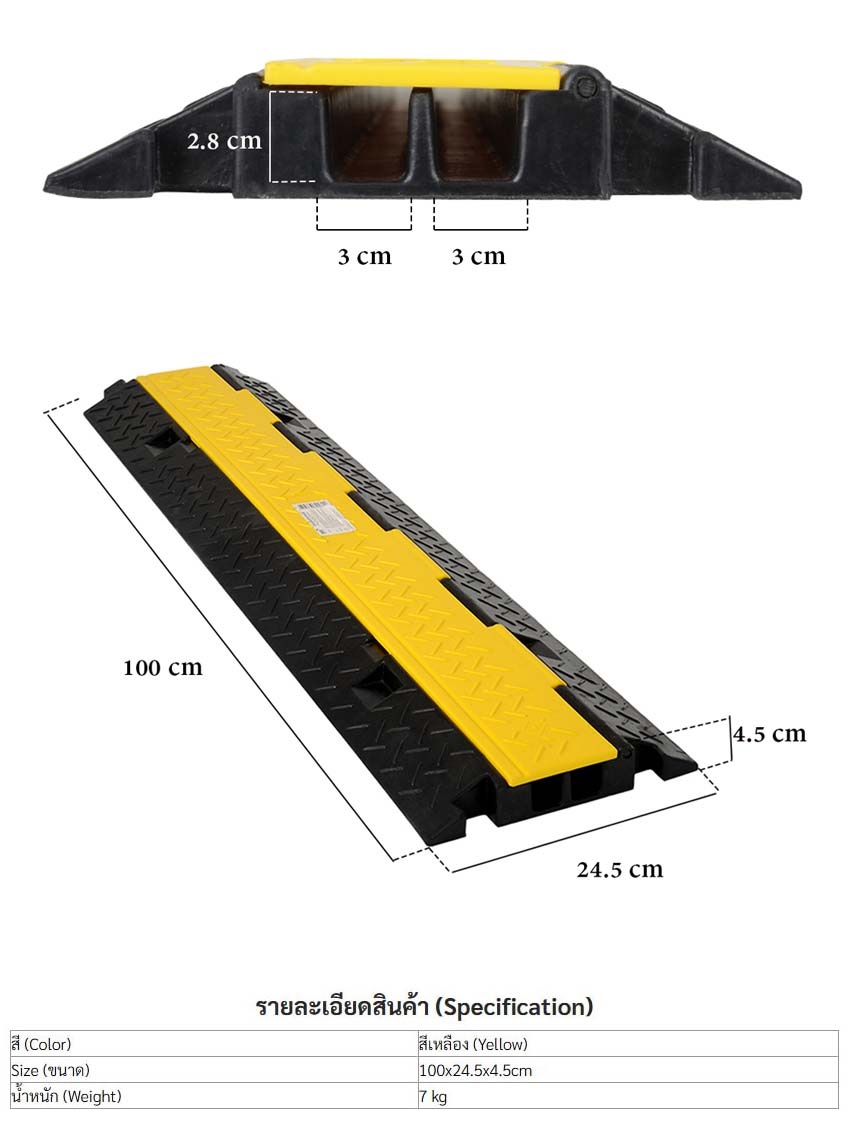 YAMADA ยางป้องกันสายเคเบิ้ล 2 ช่อง Heavy Duty Cable Protectors สีเหลือง ยืดหยุ่นสูง รับน้ำหนักได้ 10 ตัน ป้องกันสายไฟ สายเคเบิ้ลได้เป็นอย่างดี