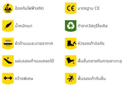 - มาตรฐาน EN ISO 20345:2011 (Europe) / ASTM F2413:2018 (USA)