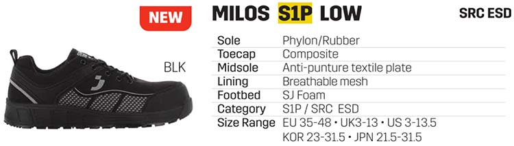 SAFETY JOGGER รองเท้าเซฟตี้หุ้มส้น หัวคอมโพสิต MILOS S1P LOW แผ่นใยกันทะลุ น้ำหนักเบา ดีไซน์สปอร์ต ทันสมัย