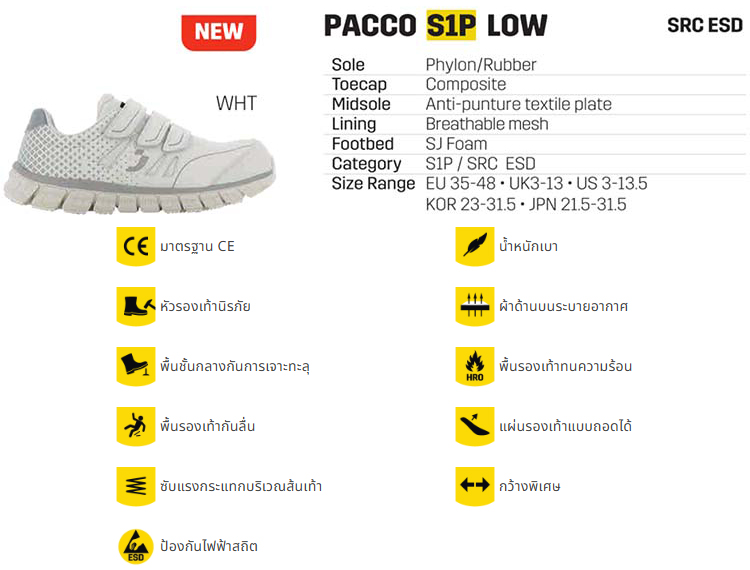 SAFETY JOGGER รองเท้าเซฟตี้หุ้มส้น หัวคอมโพสิต PACCO S1P LOW