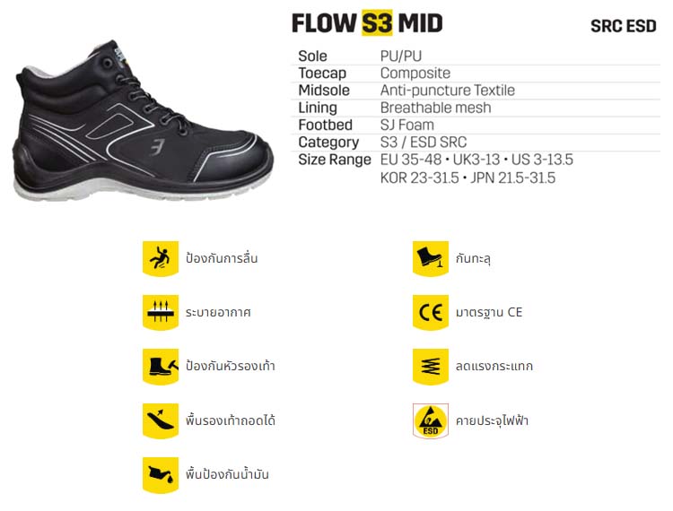 SAFETY JOGGER รองเท้าเซฟตี้หุ้มข้อ หัวคอมโพสิต FLOW S3 MID