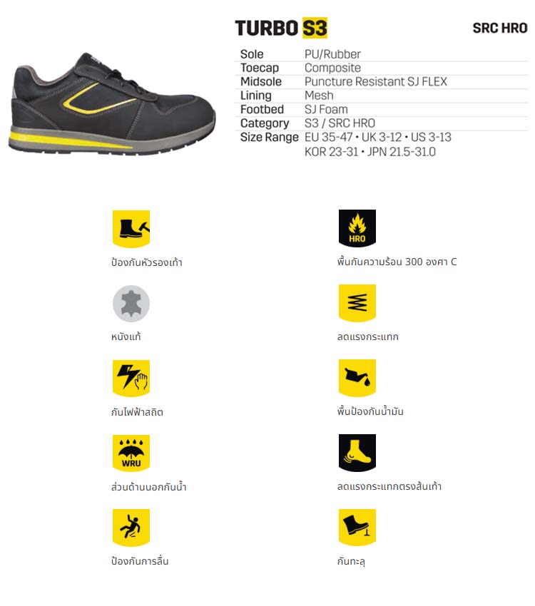 SAFETY JOGGER รองเท้าเซฟตี้หุ้มส้น หัวคอมโพสิต TURBO S3 มีแผ่นกันทะลุ พื้นรองเท้ากันความร้อนได้สูงถึง 300 องศาเซลเซียส