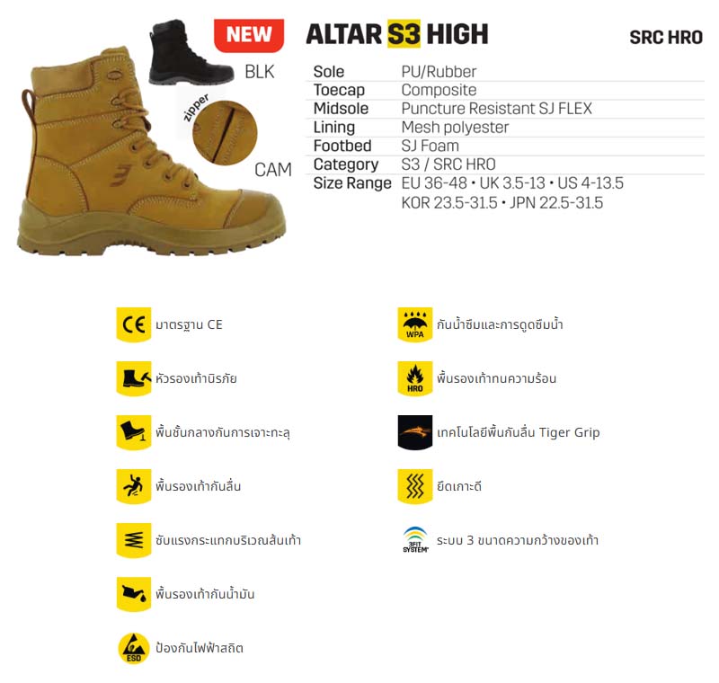 SAFETY JOGGER บู้ทผ้าใบเซฟตี้หุ้มข้อสูง หัวคอมโพสิต ALTAR S3 HIGH แผ่นใยกันทะลุแบบเสื้อกันกระสุน น้ำหนักเบา กันไฟฟ้าสถิต กันความร้อนได้สูงถึง 300 องศา