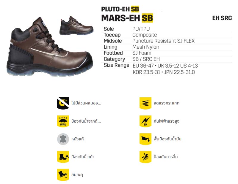 รองเท้าเซฟตี้หุ้มข้อ หัวคอมโพสิต MARS-EH SB แผ่นใยกันทะลุแบบเสื้อกันกระสุน ไม่มีส่วนผสมที่เป็นโลหะ ป้องกันได้ถึง 18,000 โวลต์ ดูดซับแรงกระแทกได้ดี