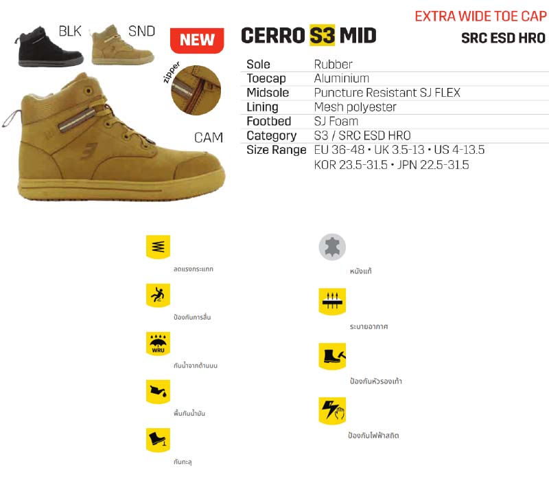 SAFETYJOGGER รองเท้าเซฟตี้หุ้มข้อ หัวอลูมิเนียม CERRO S3 MID