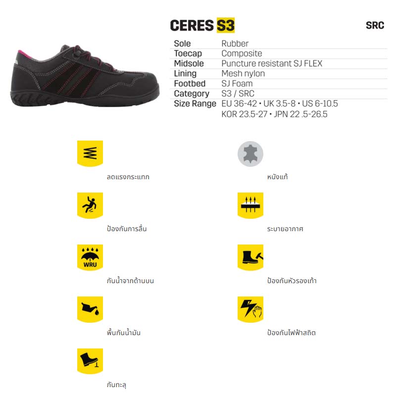 SAFETY JOGGER รองเท้าเซฟตี้หุ้มส้น สำหรับผู้หญิง CERES S3 หัวคอมโพสิท มีแผ่นกันทะลุ สามารถใช้งานได้ในสถานที่ทำงานทั่วไป