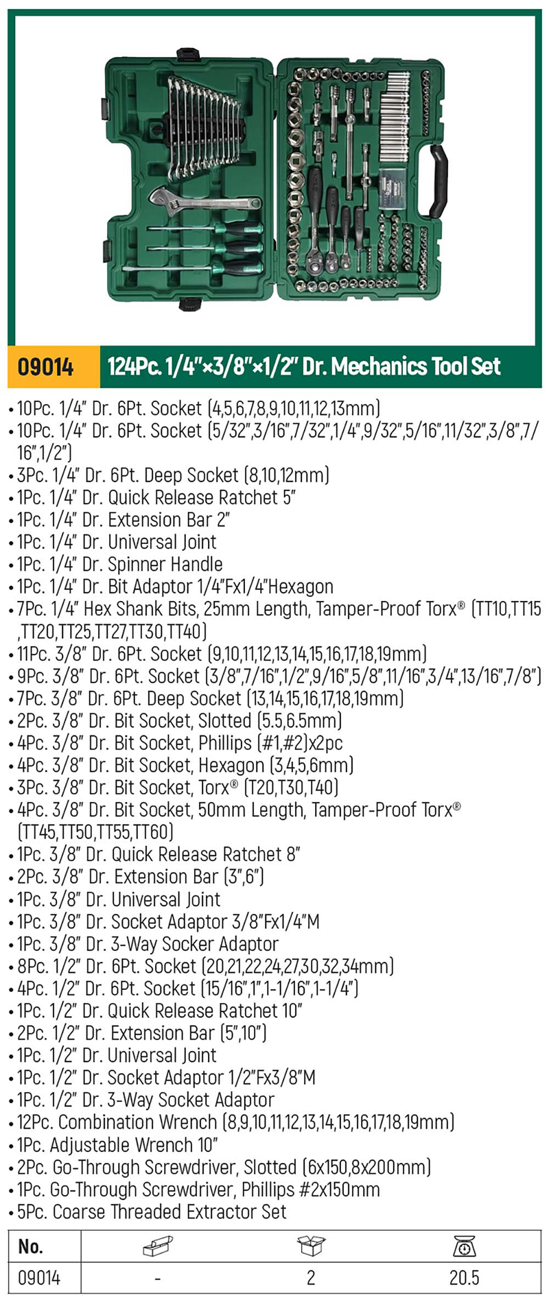 SATA ชุดประแจบล็อค 124 ชิ้น ขนาด 1/4" ,3/8" ,1/2" รุ่น SATA 09014
