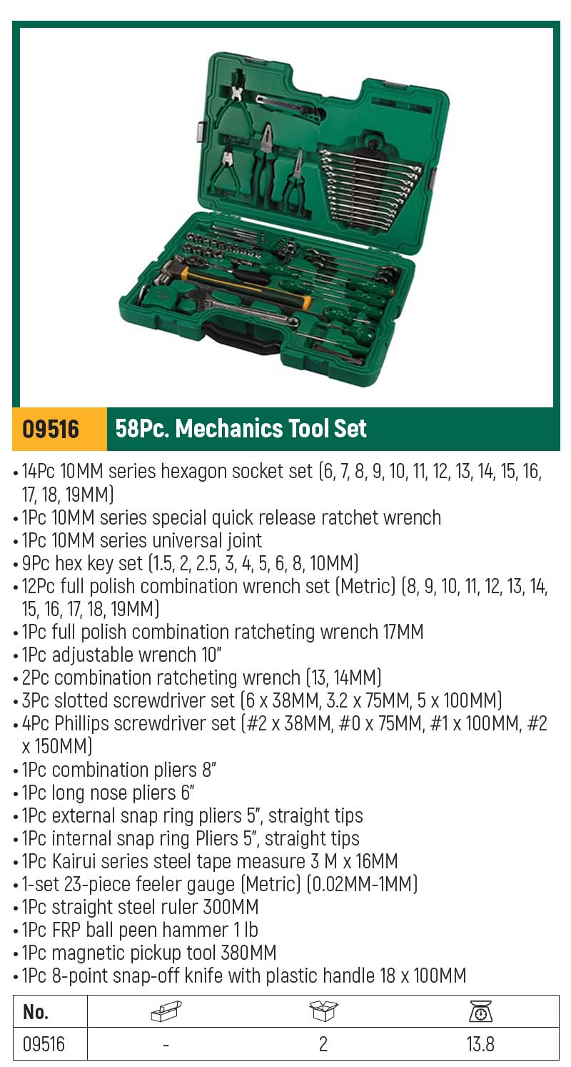 SATA ชุดเครื่องมือช่าง 58 ขิ้น รุ่นงานหนัก รุ่น SATA 09516
