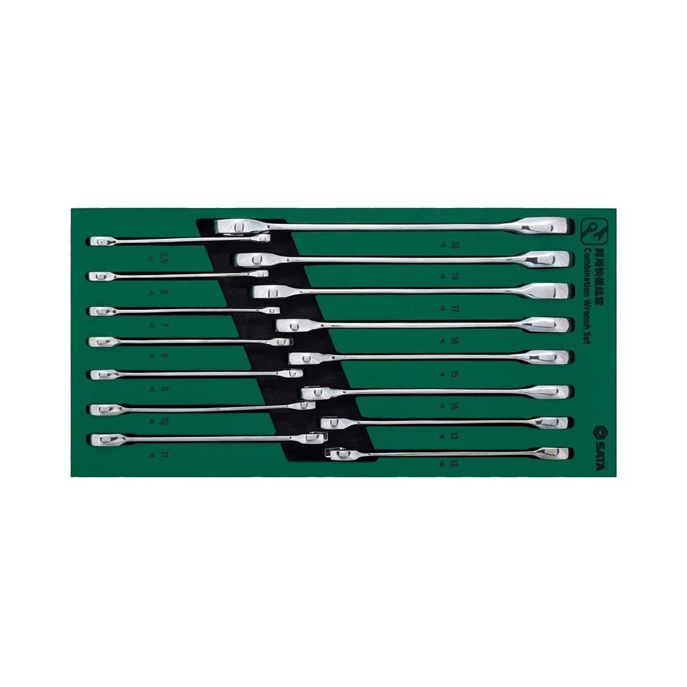 ชุดประแจแหวนข้างฟรี-ปากตายคอสั้น 15 ชิ้น รุ่น SATA 09908 เหมาะสำหรับเก็บในตู้เครื่องมือ วัสดุถาด EVA ทนทานต่อแรงกระแทก กันน้ำได้ และทนต่อรังสี UV