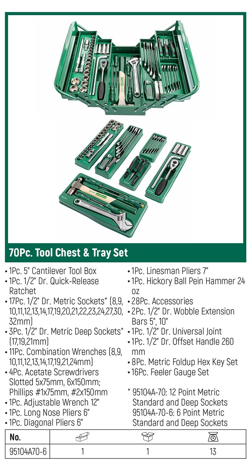 SATA ชุดกล่องและถาดเครื่องมือ 70 ชิ้น มม. SATA 95104A70-6