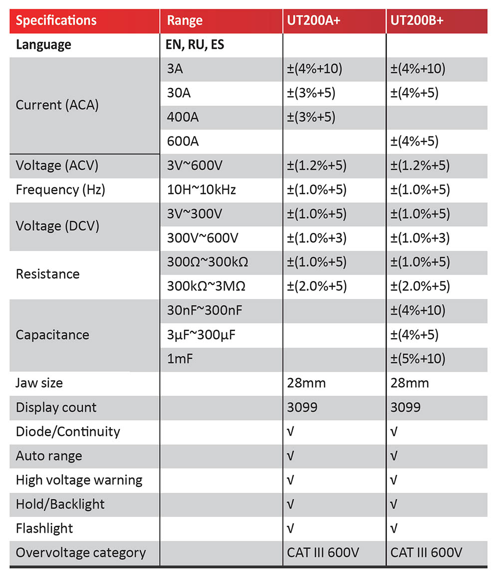 UNI-T Digital Clamp Meter แคล้มป์มิเตอร์วัดไฟแบบดิจิตอล รุ่น UT200A+ วัดค่าแบบ True RMS แม่นยำสูง หน้าจอ LCD แบบมีไฟแบ็คไลท์