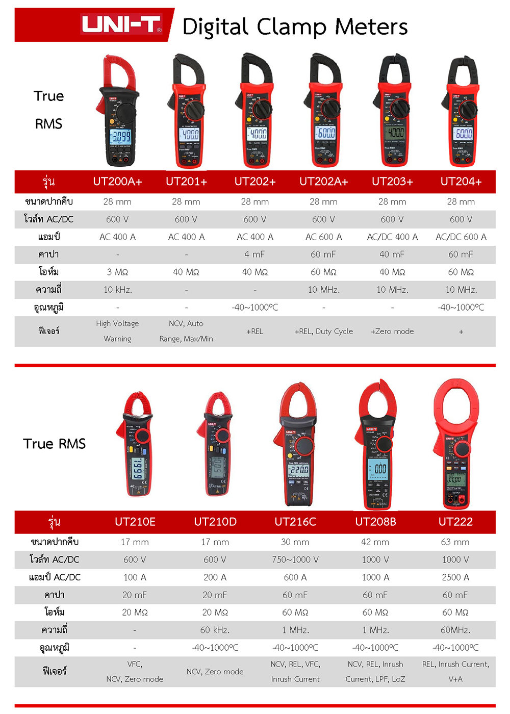 UNI-T แคล้มป์มิเตอร์วัดไฟแบบดิจิตอล รุ่น UT202A+