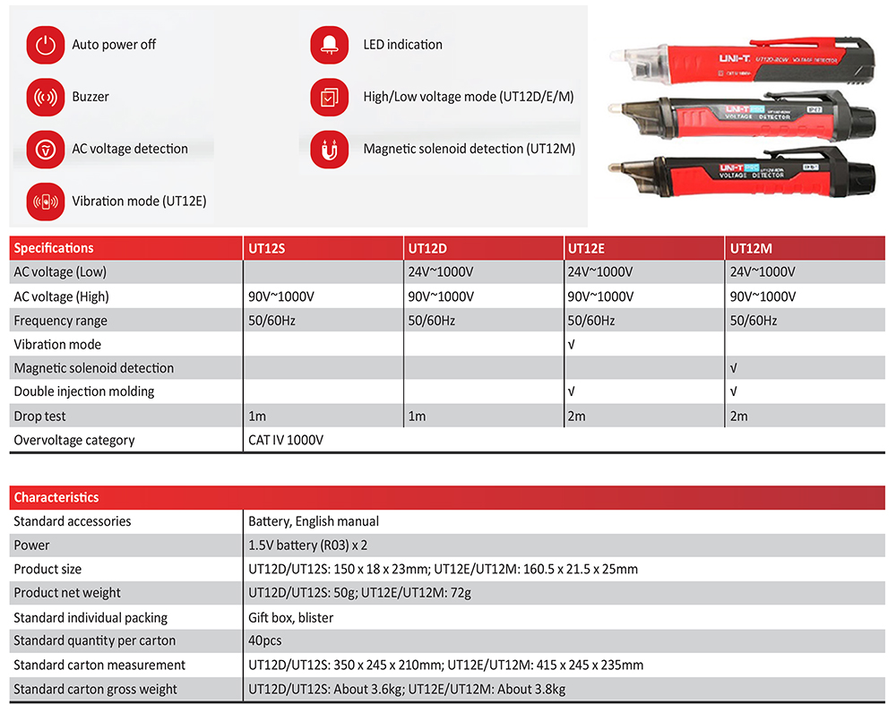 UNI-T ปากกาตรวจจับแรงดันไฟฟ้าแบบไม่สัมผัส รุ่น UT12D-ROW
