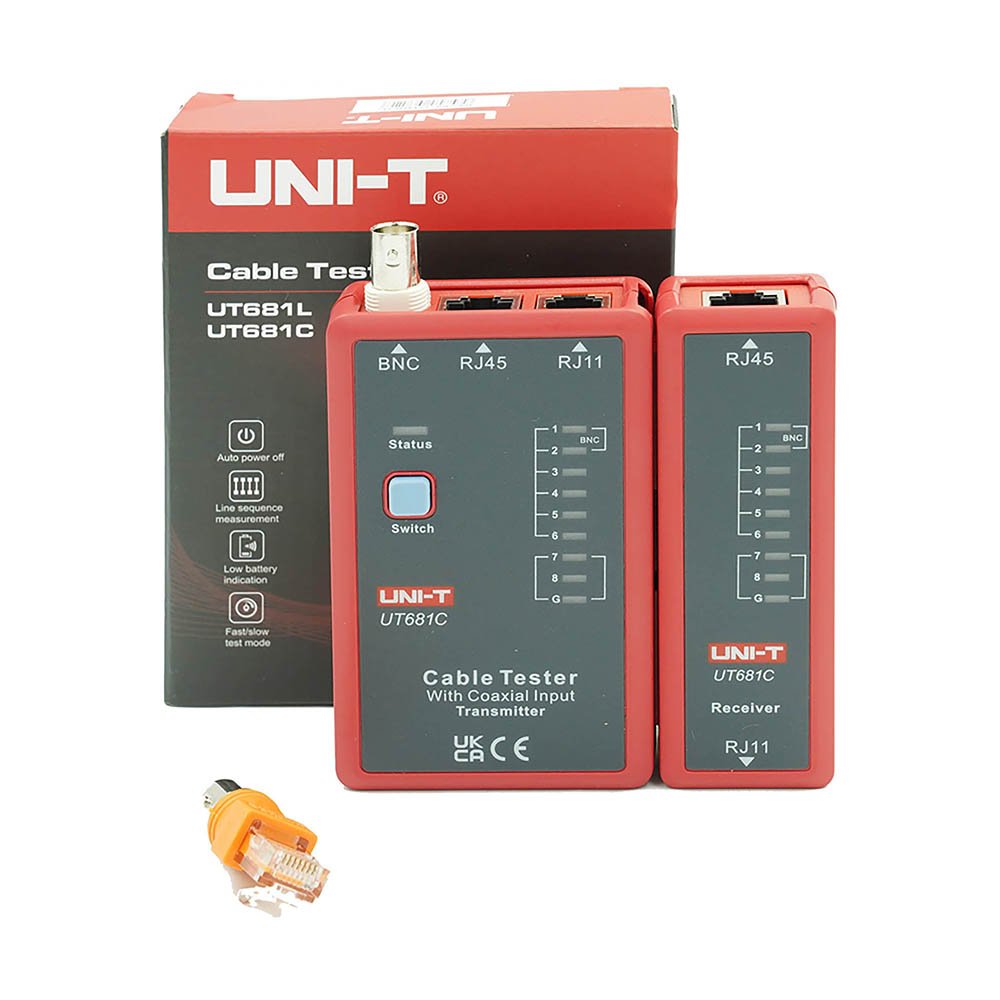 UNI-T เครื่องทดสอบสายแลนด์ สายอินเตอร์เน็ต (RJ45,RJ11,BNC) รุ่น UT681C ใช้เพื่อตรวจสอบสาย Ethernet ใช้งานง่ายด้วยปุ่มกดใช้งานเพียงปุ่มเดียว