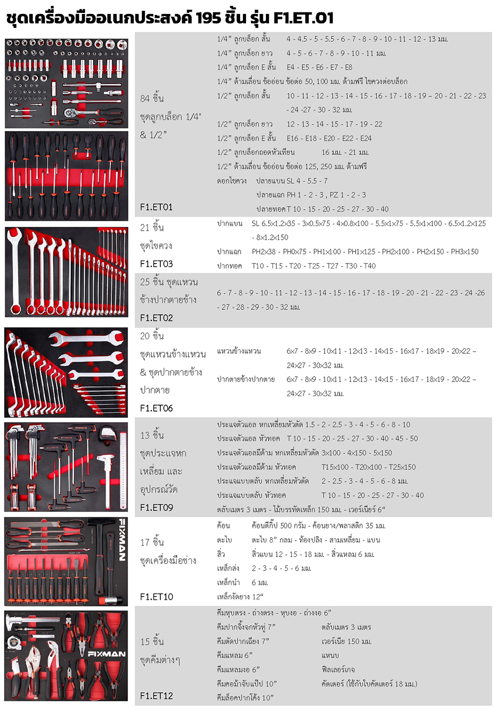 FIXMAN ชุดถาดเครื่องมืออเนกประสงค์ 195 ชิ้น รุ่น F1 ET01