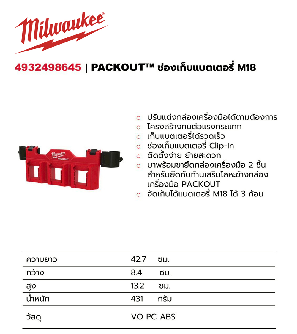 MILWAUKEE 4932498645 PACKOUT ช่องเก็บแบตเตอรี่ M18