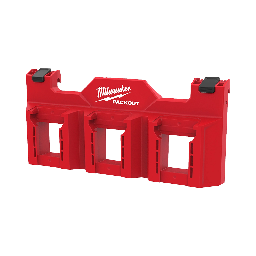 MILWAUKEE 4932498645 PACKOUT ช่องเก็บแบตเตอรี่ M18 จัดเก็บได้สูงสุด 3 ก้อน ติดตั้งกับ PACKOUT™ ได้ทั้งสองทิศทาง โครงสร้างทนทานต่อแรงกระแทก