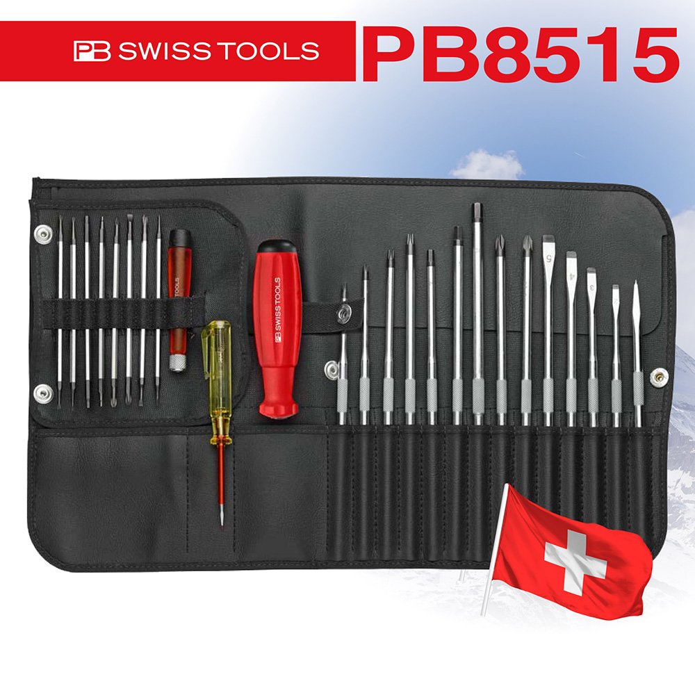 PB Swiss Tools ชุดไขควง 25 ชิ้น พร้อมซองหนัง รุ่น PB8515 ด้ามยางกันลื่น กันน้ำมัน จับถนัดมือ น๊อตไม่บิ่น หัวไม่รูด ผลิตจากประเทศสวิตเซอร์แลนด์ 100%