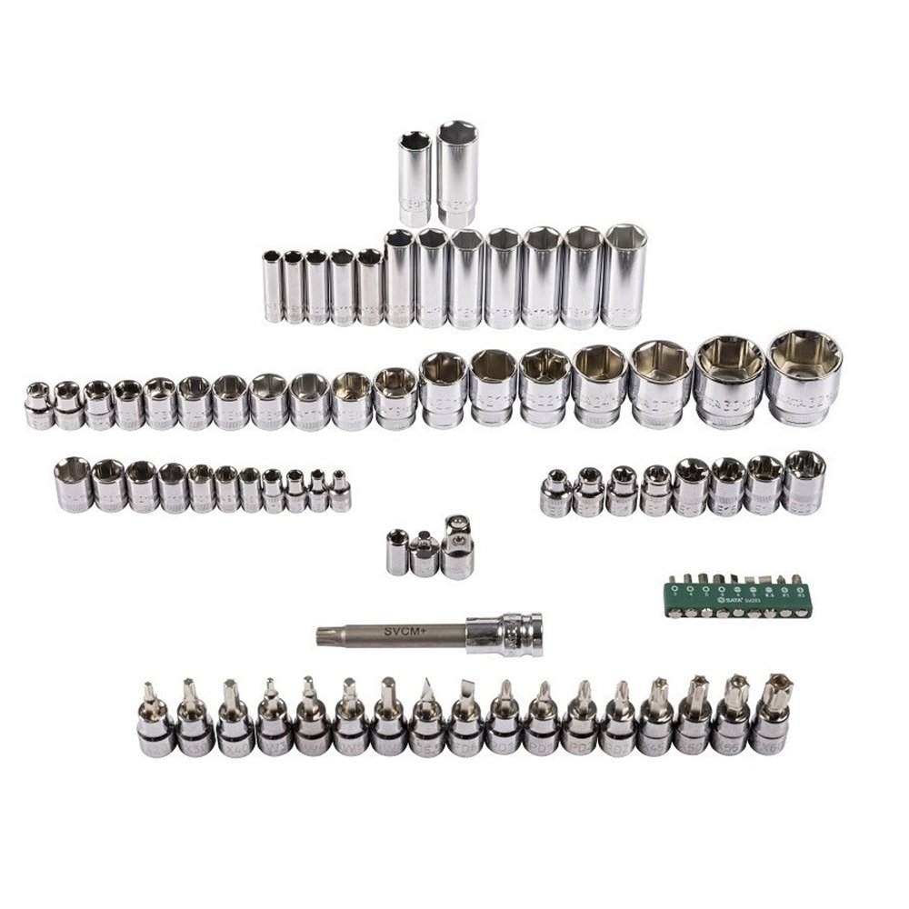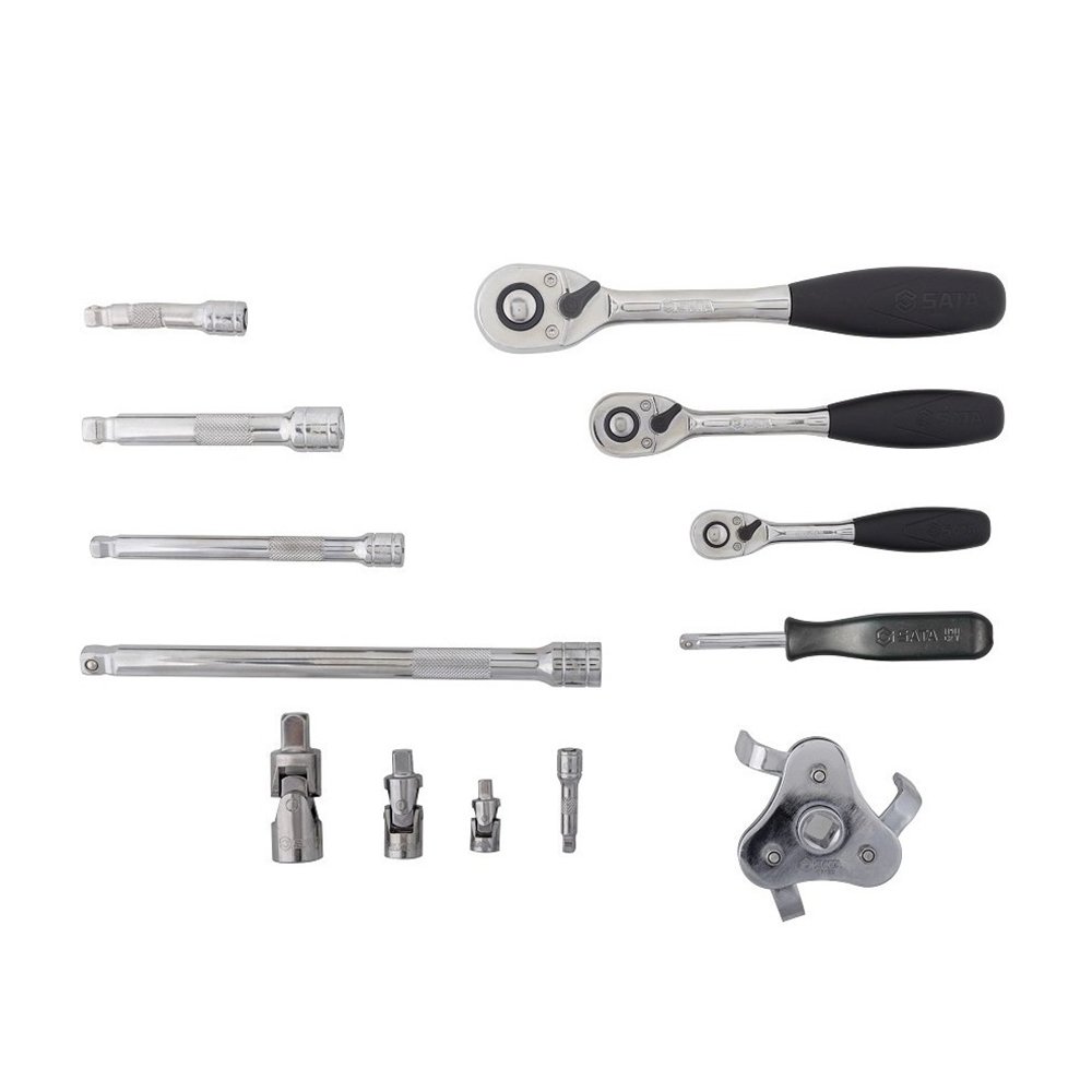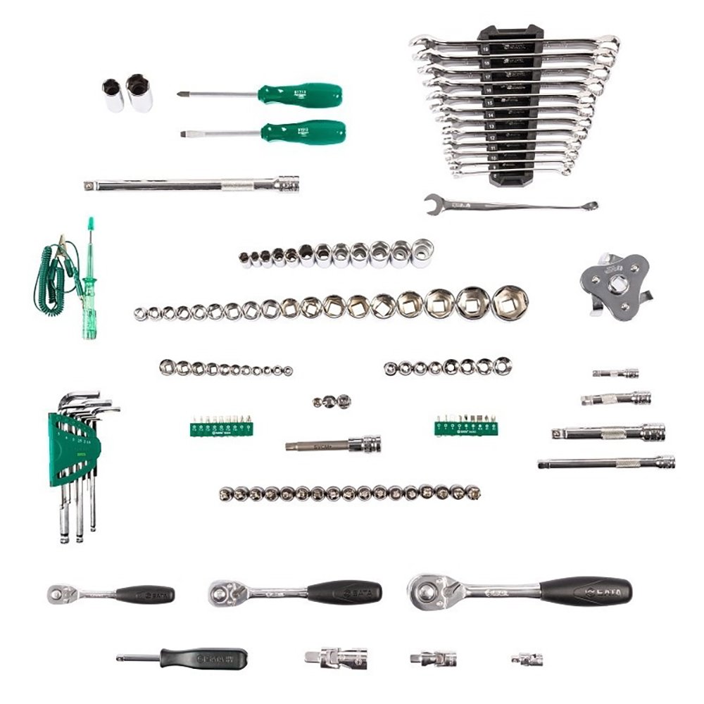 SATA 09014A ชุดเครื่องมือซ่อมรถ อเนกประสงค์ ชุดประแจ ชุดบล็อก 1/4"+3/8"+1/2" 128 ชิ้น วัสดุ CR-V แข็งแรง มาพร้อมกล่องเครื่องมือสำหรับจัดเก็บ