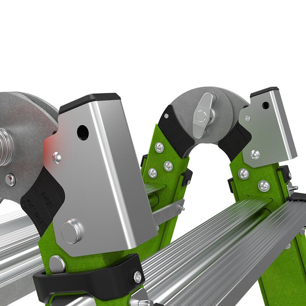 - ระบบล็อค Rapid Lock (สิทธิบัตร) เพียงจับและหมุนปุ่ม Rapid Lock จากนั้นเลื่อนขาบันไดไปยังขนาดที่ต้องการ แล้วหมุนล็อคอีกครั้งเพื่อยึดบันไดให้เข้าที่