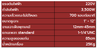 T-REX เครื่องคอริ่ง 3500 วัตต์ (ไม่รวมดอกคอริ่ง) เจาะคอนกรีตเสริมเหล็ก เจาะหิน เจาะเหนือหัว ขนาดรูเจาะ 1 นิ้ว ถึง 12 นิ้ว ความสูงของแท่น 85 ซม.