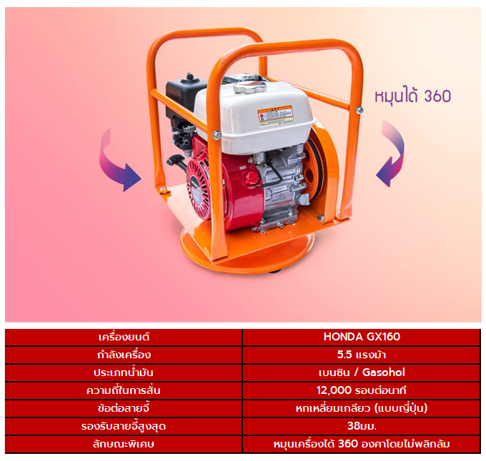 เครื่องจี้ปูนความถี่สูง T-REX HONDA เบนซิน 5.5 แรง หัวไดนาแพค ฐานหมุนได้รอบลากสายโดย เครื่องไม่พลิก สามารถรองรับหัวจี้ ความถี่สูงได้ ขนาด 38 mm