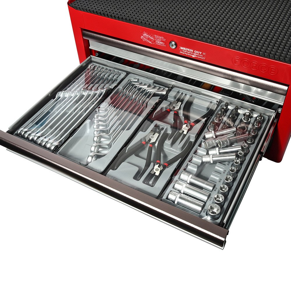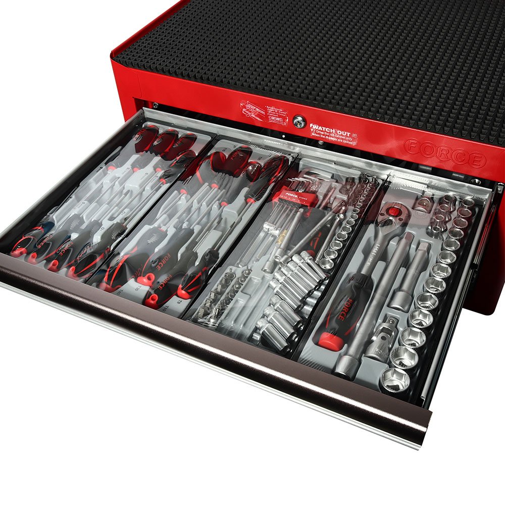 FORCE ตู้ 3 ลิ้นชัก + เครื่องมือ180 ชิ้น รุ่น 50223R-180 ตู้เครื่องมือพร้อมอุปกรณ์ เหมาะสำหรับช่างมืออาชีพ หยิบใช้งานและจัดเก็บได้สะดวก