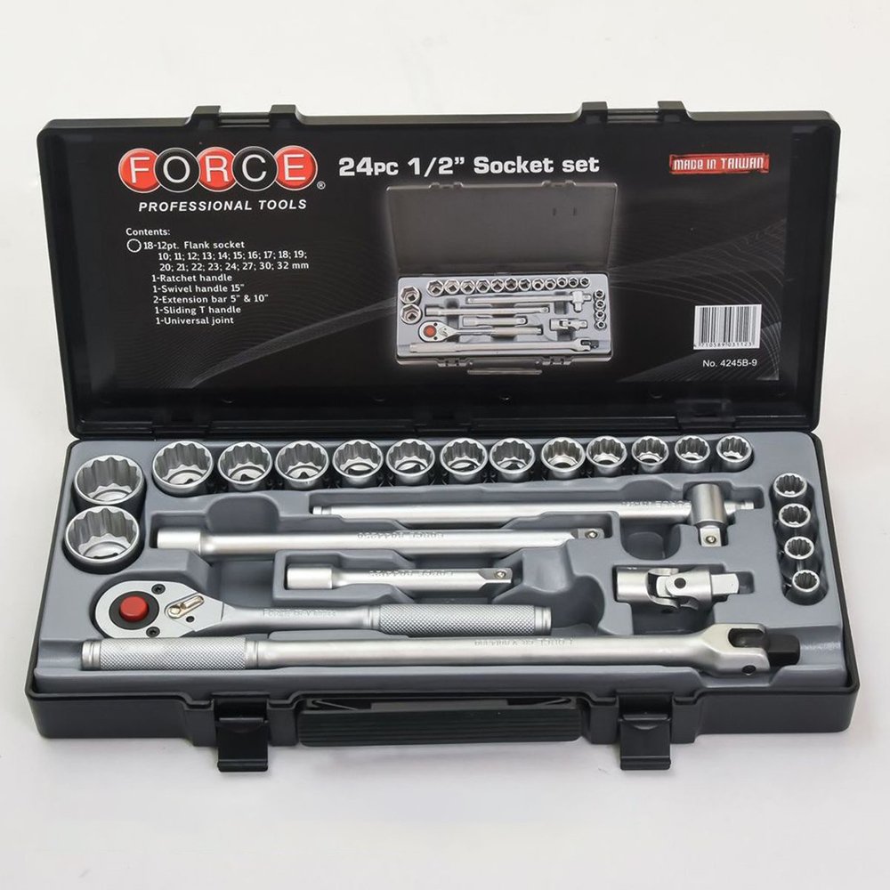 FORCE ชุดลูกบล็อก ขนาด 1/2 นิ้ว 12 เหลี่ยม (ขนาดมิล) 24 ชิ้น รุ่น 4245B-9